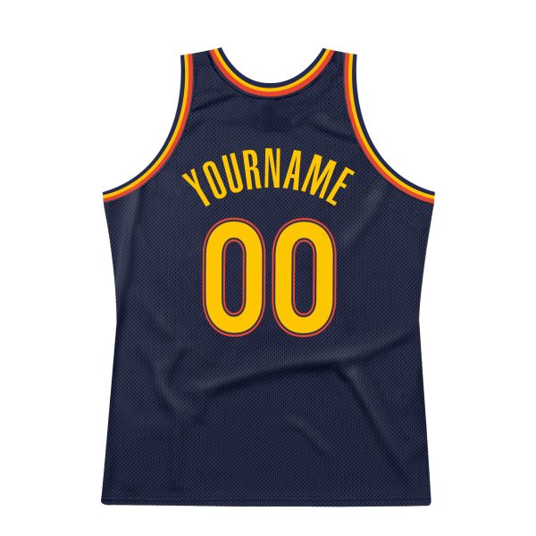 Custom Navy Gold-Orange Authentic Throwback Basketball Jersey