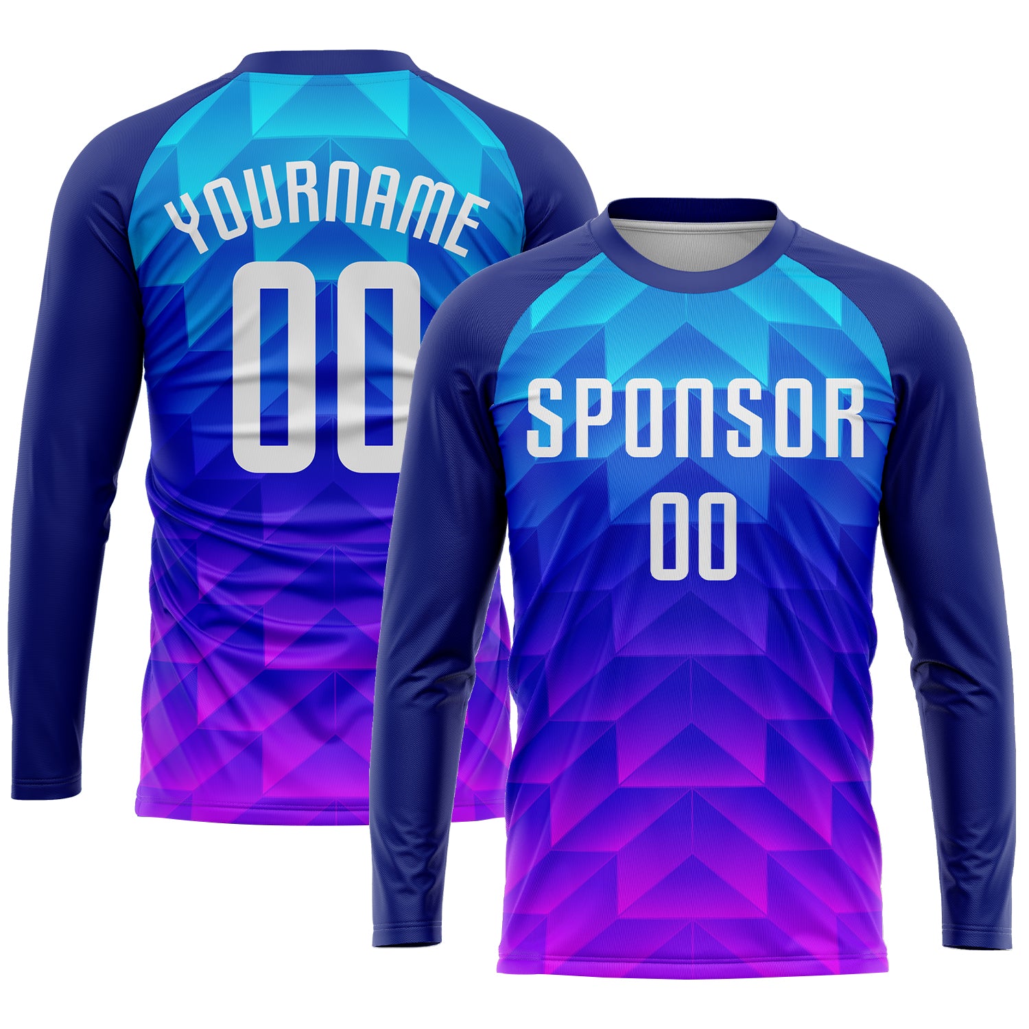 Custom Royal White Light Blue-Hot Pink Sublimation Soccer Uniform Jersey