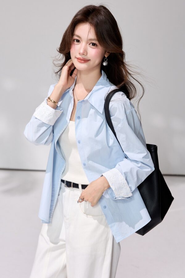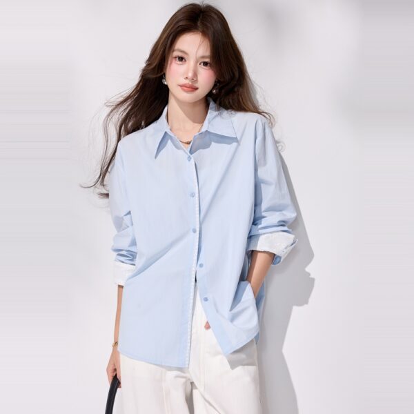 Simple blue spring coat Casual long sleeve shirt