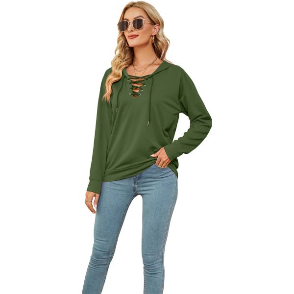 - 1*Women’s Neck Tie Long Sleeve Hooded Sweatshirt